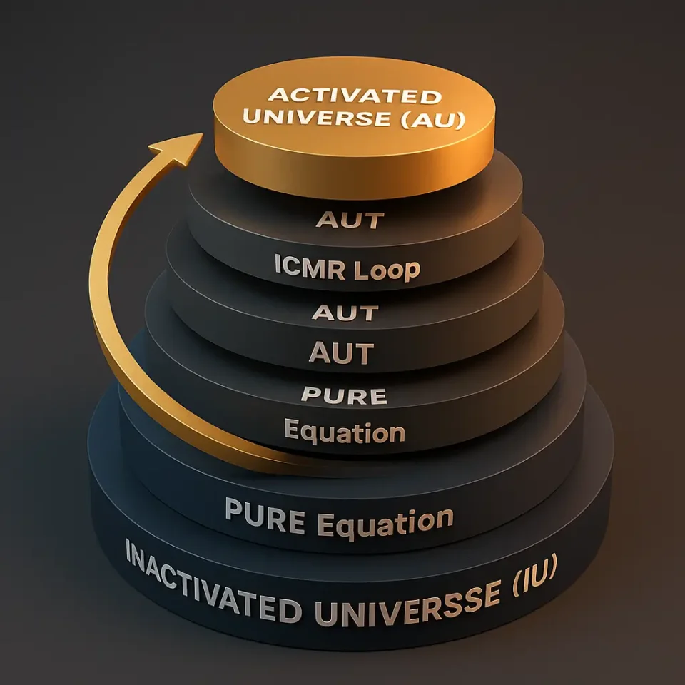The transformation from IU → AU follows a systematic activation logic grounded in the PURE Equation, M4 Loop, and ICMR Loop: