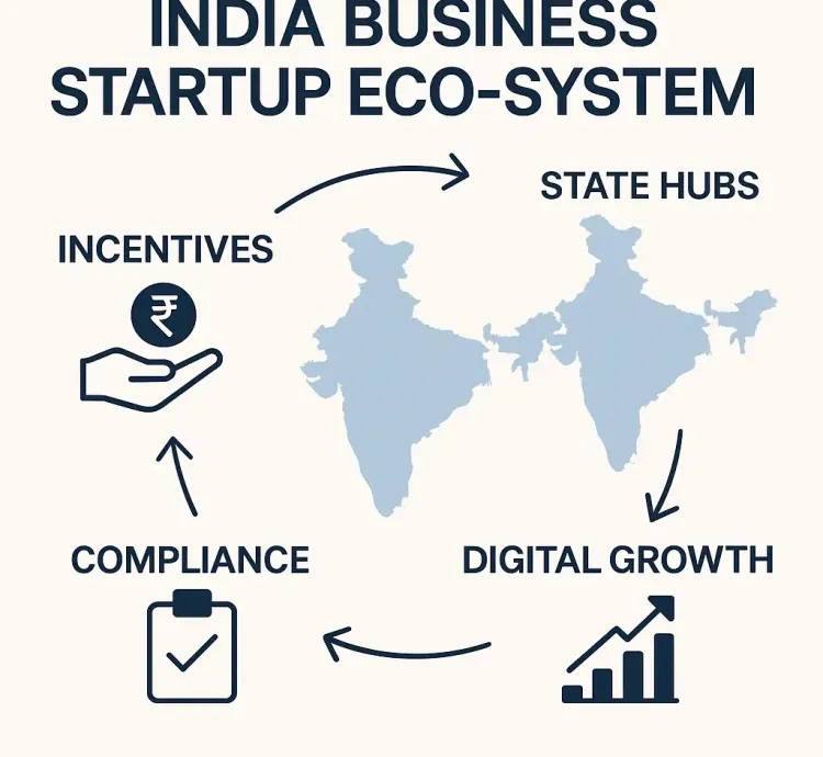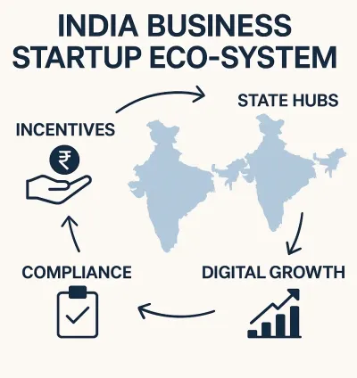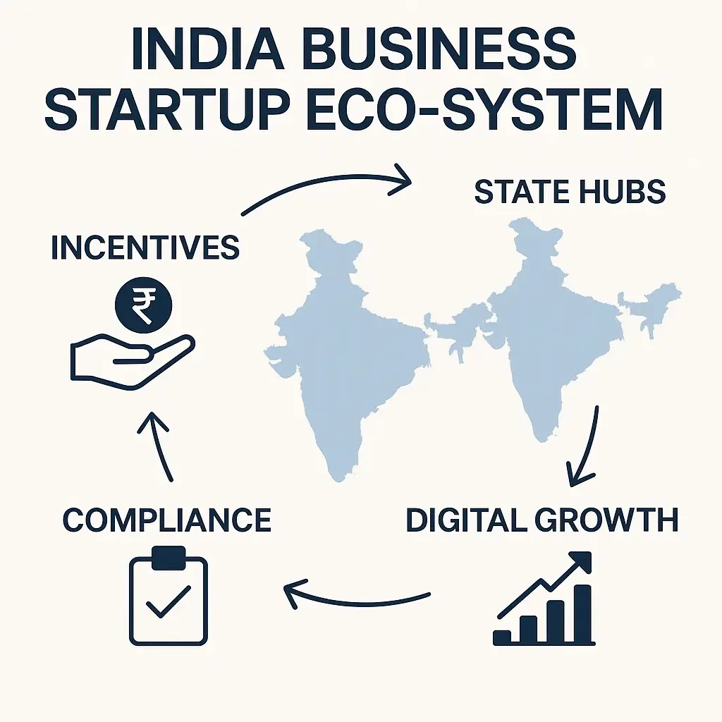 “India Business Startup Eco-System: State Hubs, Digital Growth, Compliance, Incentives.”