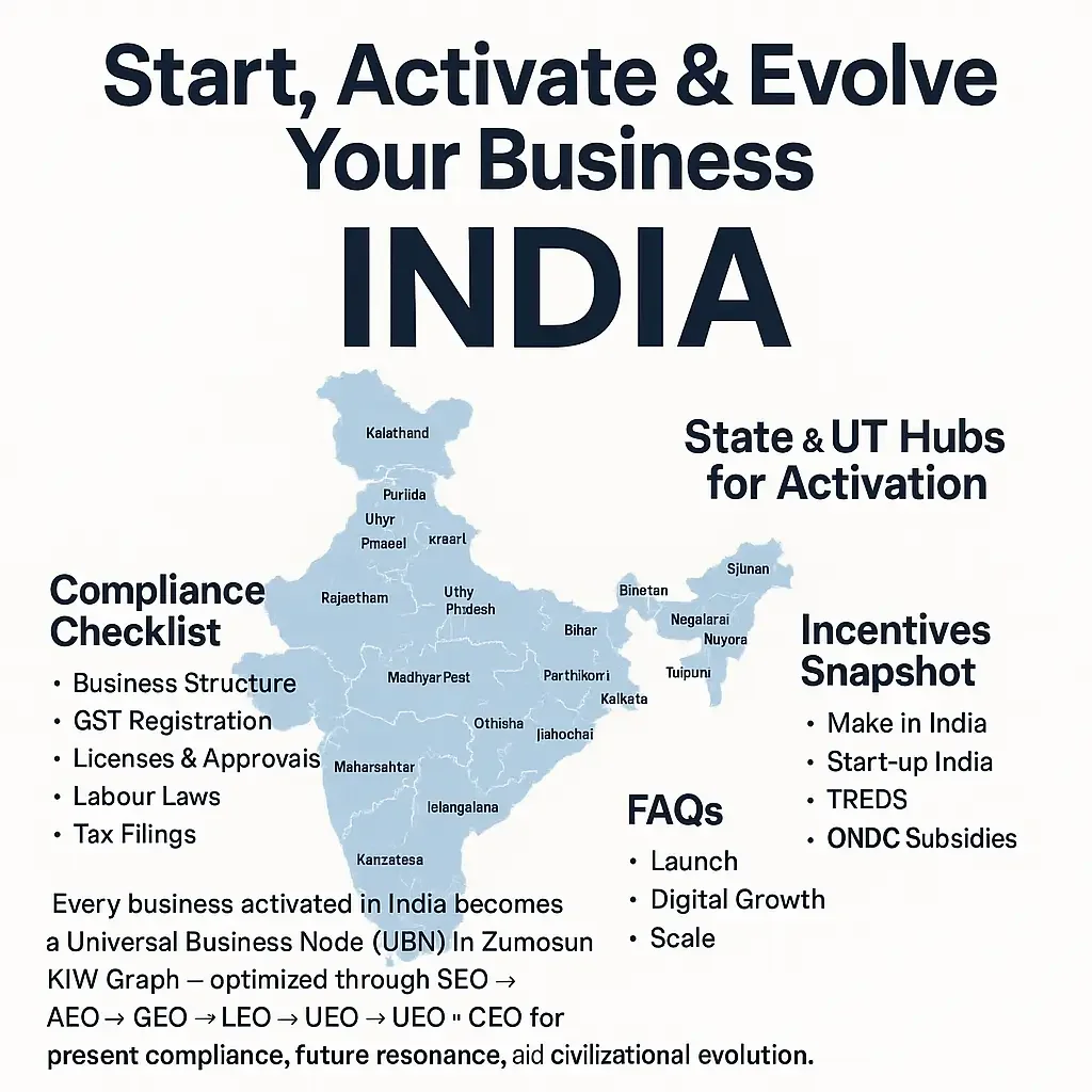 This page is your complete playbook to incorporate, activate, and evolve your business across India’s 28 States and 8 Union Territories — with compliance, incentives, and growth strategies aligned to the EAE Framework (Execution, Activation, Evolution).