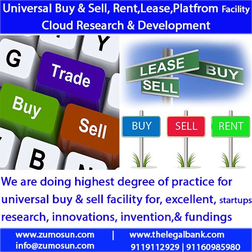 Universal Buyer & Seller, Rent, Lease platform is a Zumosun integrated cloud platform for young entrepreneurs, Founders, Co-founders, Researchers, Inventors, Innovators, Investors, businesses, companies, etc. We want an excellent interaction of information’s, knowledge, skills, intelligence, talent, and wisdom, finance for business & startups ecosystem.