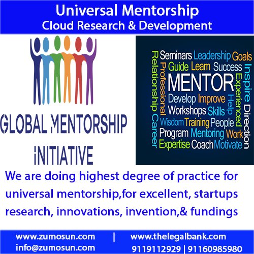 Universal Mentorship platform is a Zumosun integrated cloud platform for young entrepreneurs, Founders, Co-Founder, Researchers, Inventors, Innovators, Investors, businesses, companies, etc. We want an excellent interaction of information’s, knowledge, skills, intelligence, talent, and wisdom, finance for business & startups ecosystem.