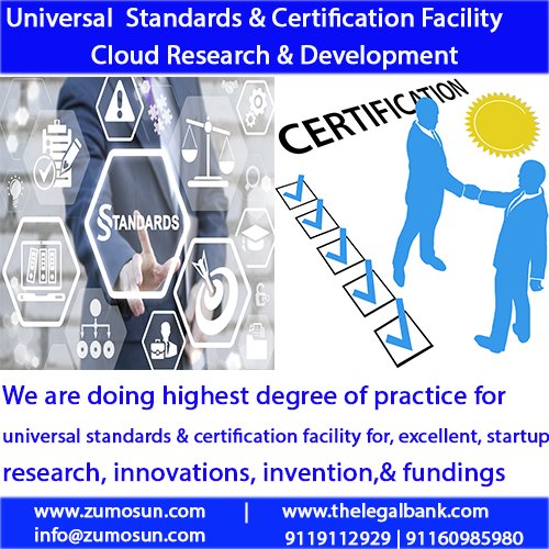 Universal Standards & Certification platform is a Zumosun integrated cloud platform for young entrepreneurs, Founders, Co-Founder, Researchers, Inventors, Innovators, Investors, businesses, companies, etc. We want an excellent interaction of information’s, knowledge, skills, intelligence, talent, and wisdom, finance for business & startups ecosystem.