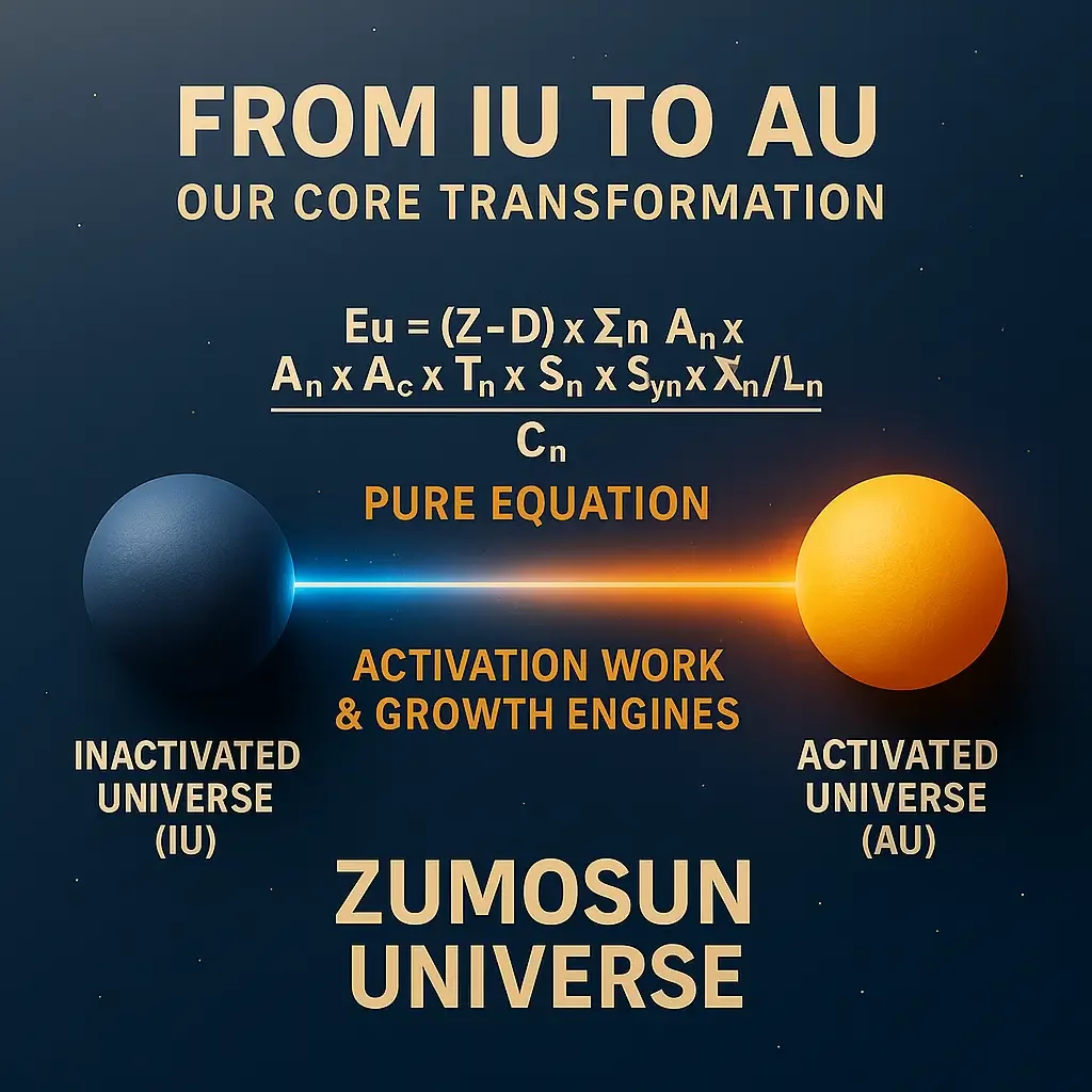 Zumosun AUC exists to transform the Inactivated Universe (IU) into the Activated Universe (AU) — unlocking the full spectrum of universal potential through the PURE Equation and our integrated Activation Work & Growth Engines.
